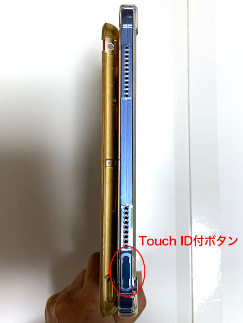 ホームボタンが消えたと思ったら、側面の電源ボタンが指紋認証(タッチID)になっています。
